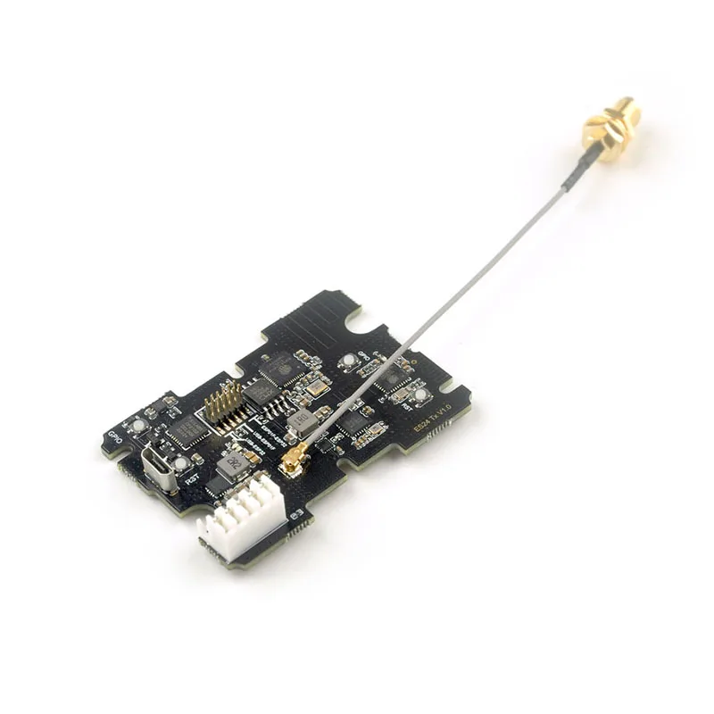 Этот микро TX разработан Happymodel и основан на открытом источнике-ExpressLRS, который является очень популярной низкой задержкой и высокой многократной частотой радиочастотного модуля для RC самолетов и FPV гонок. Его основная аппаратная архитектура-ESP32, ESP8285 и SX1280 RF-чип. Модуль ES24TX-это полное решение, которое уже предварительно загрузило прошивку Expresslrs, и это подключи и работай.