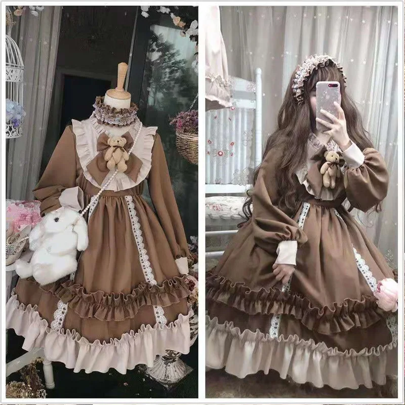 Осеннее детское милое платье в японском стиле Лолита для девочек женское милое винтажное женское платье в стиле Лолита с длинным рукавом