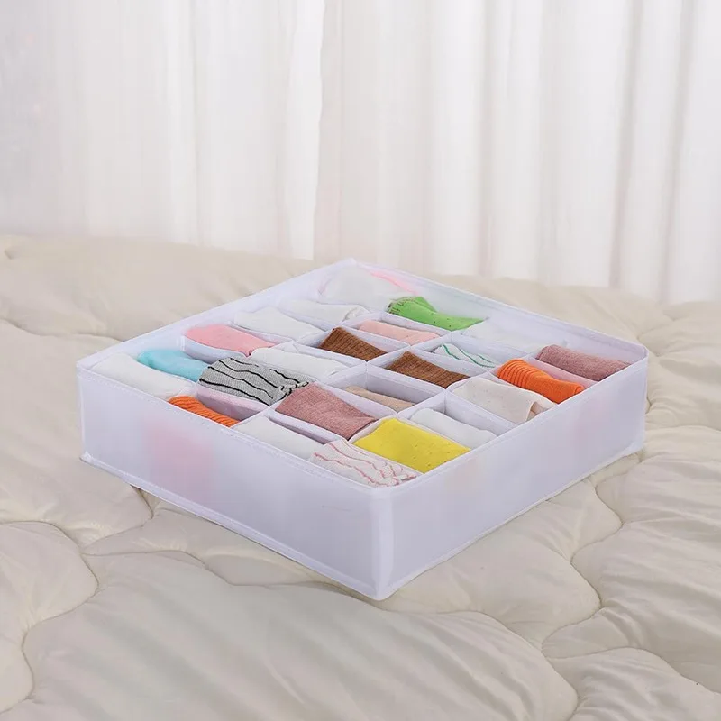 Материал: Нетканая ткань, нейлоновая сеткаОсобенности: 1. Используйте его, чтобы хранить ваши товары быстро и аккуратно, так что вы можете легко найти свои товары2. Легко складывается, чтобы сэкономить место, когда не используется3. Изготовлен из нейлоновой сетки, без специфического запаха, моющийся, прочный4. Подходит для гардеробных, шкафов или ящиков5. Организуйте нижнее белье, бюстгальтер, носки, галстук и т. д.