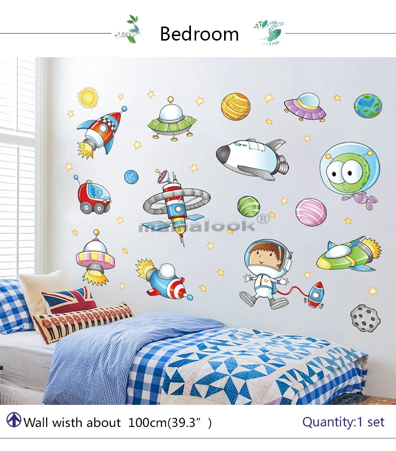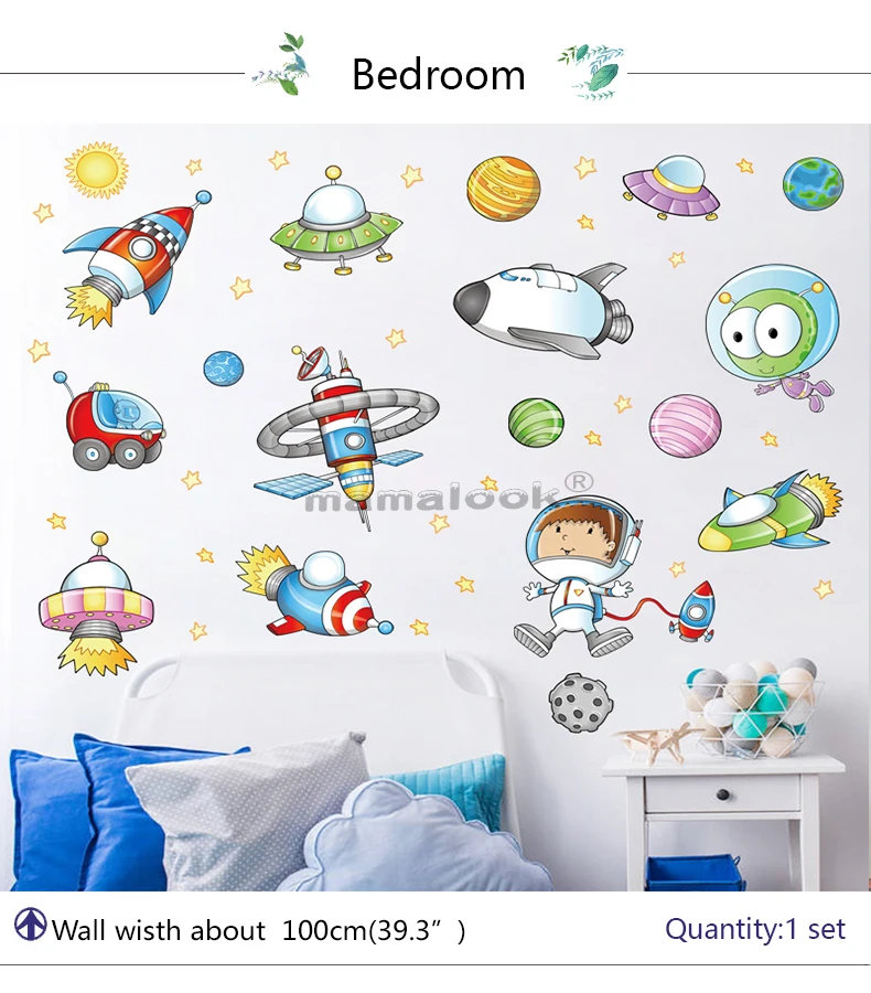 Наклейка на стену с изображением космоса, астронавта, мультфильма, детская комната, космос, планета, галактика, ракета, корабль, декоративные наклейки на стену для детской комнаты