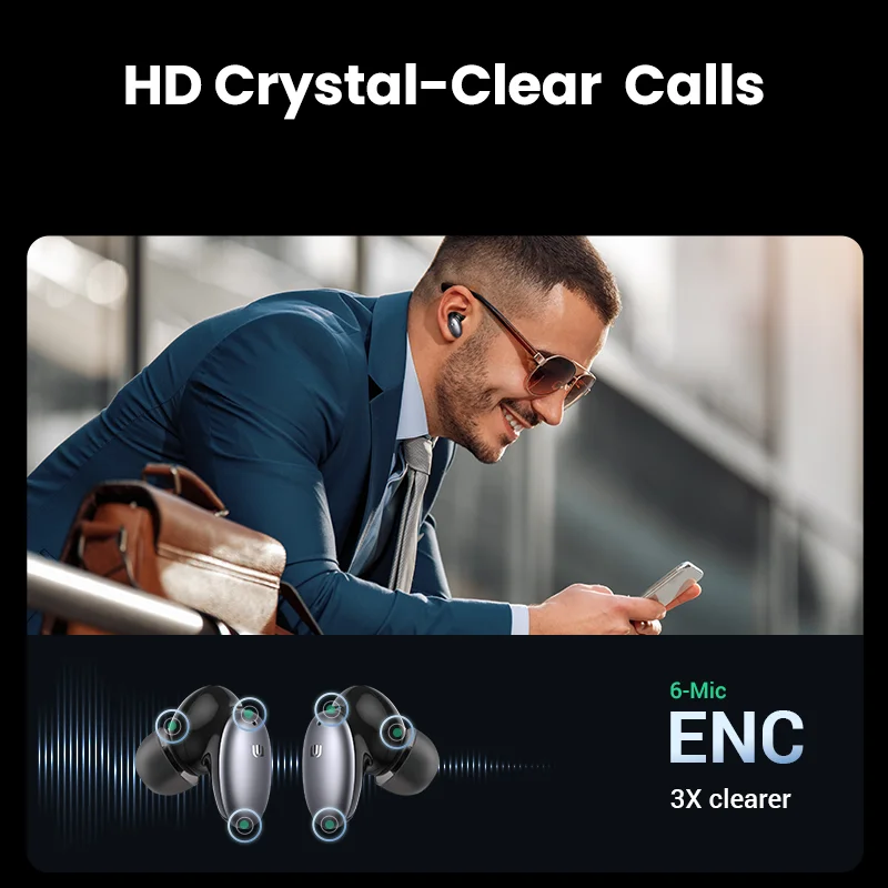 Промокод: OWHP450 ( 450 скидка ) Беспроводные наушники Ugreen HiTune X6, Bluetooth-наушники, TWS-вкладыши, ANC, 35 дБ, гибридные, активное шумоподавление, 50 мс