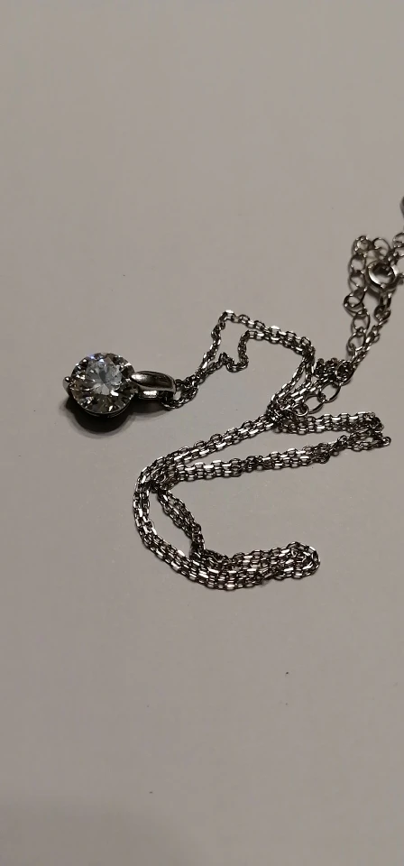 Заказала этот кулон в пару к колечку, похожего дизайна. К сожалению фото не передает блеск граней. Кулон переливается и играет гранями на свету. Сертификат имеется. Цепочка якорная 45 см. Пробы на кулоне и цепочке стоят 925. Продавца рекомендую. Выслал все в срок. Надежный продавец.