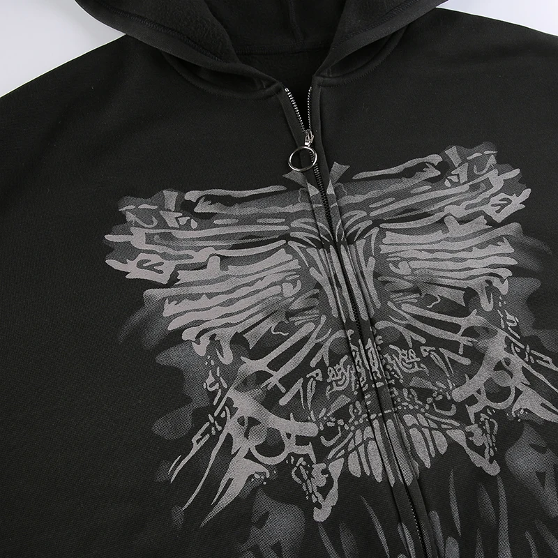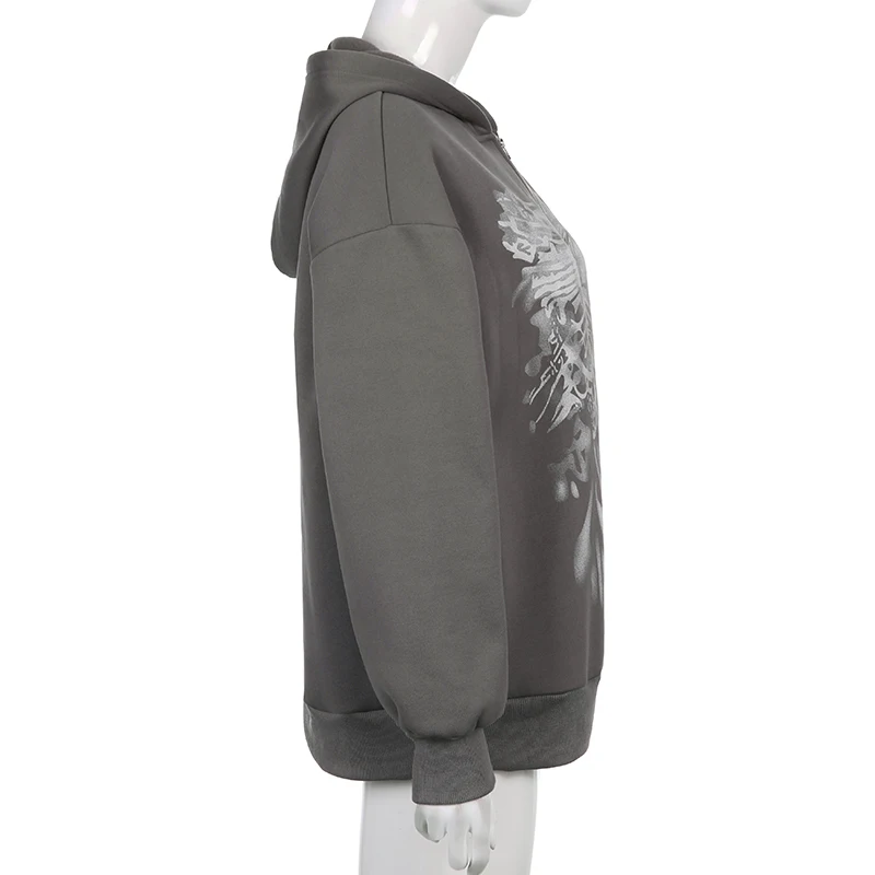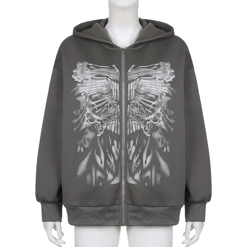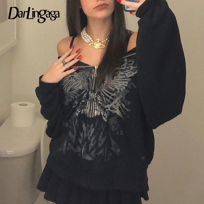 Толстовка Darlingaga женская с принтом, уличная одежда в готическом стиле, Худи оверсайз, пальто с капюшоном, на молнии, с графическим принтом, осень