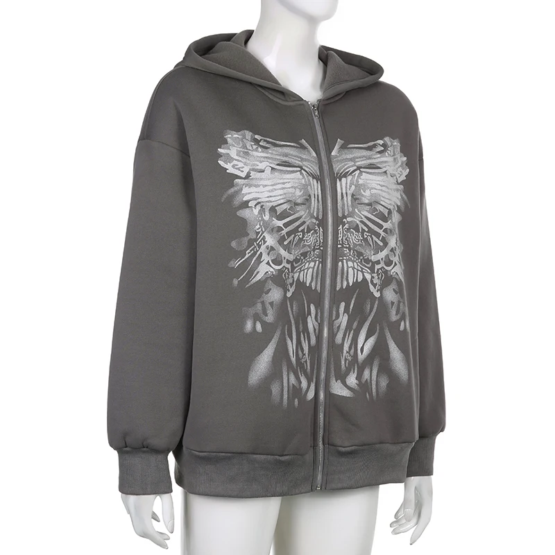 Готический гранж-панк с принтом бабочки, толстовки оверсайз на молн...