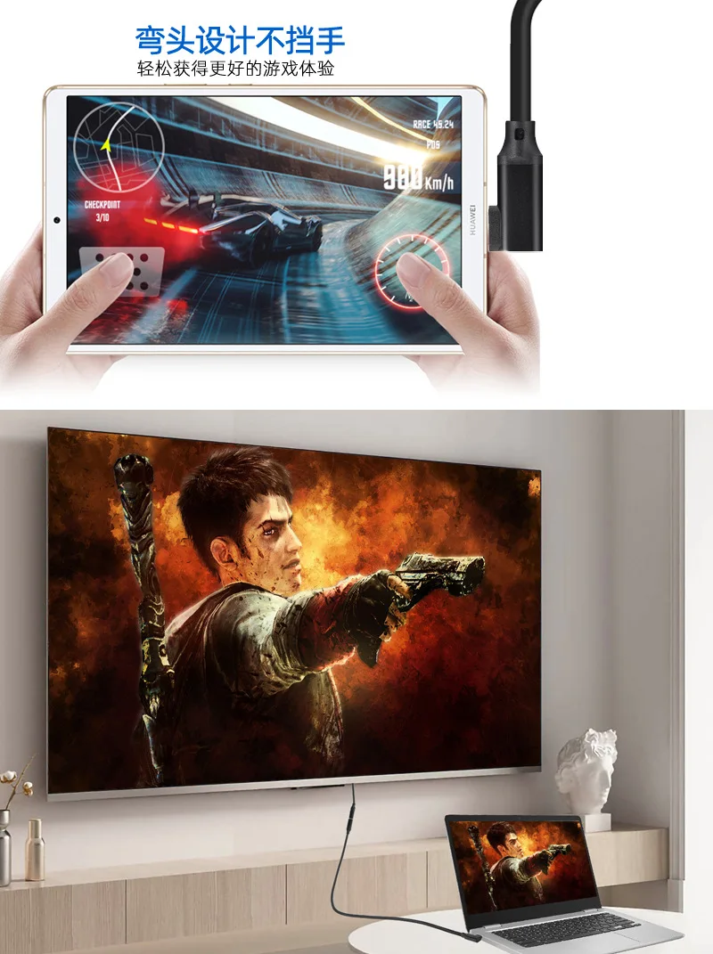Кабель-удлинитель 100 Вт локоть USB3.1 Gen 2 Type-C 4K @ 60 Гц 10 Г...