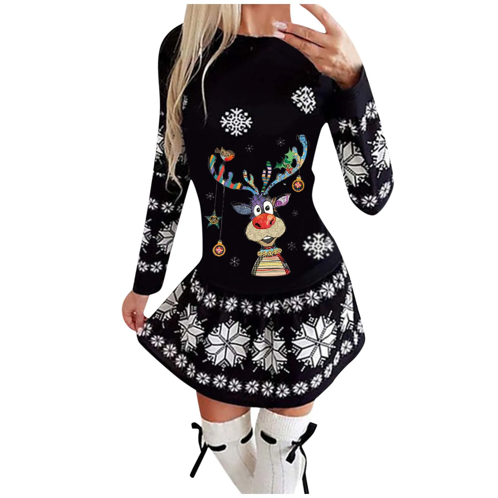 Женское вечервечерние платье, короткое платье с принтом в виде снежинок, с пышной юбкой, повседневное, для зимы, размера плюс