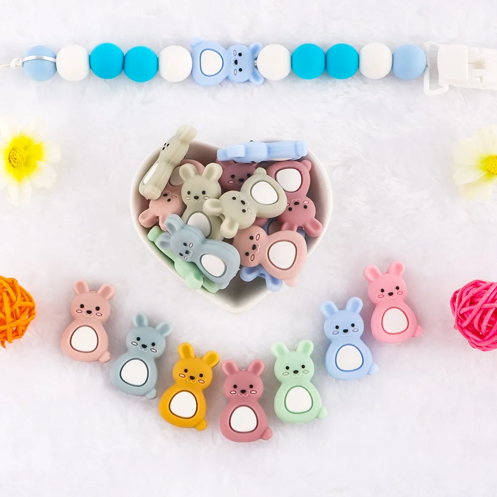 Kovict 10 шт. Новый мини Кролик Детские Силиконовые животные бусины грызунок Прорезыватель для зубов крошечная Удочка Прорезыватель подарок пищевой
