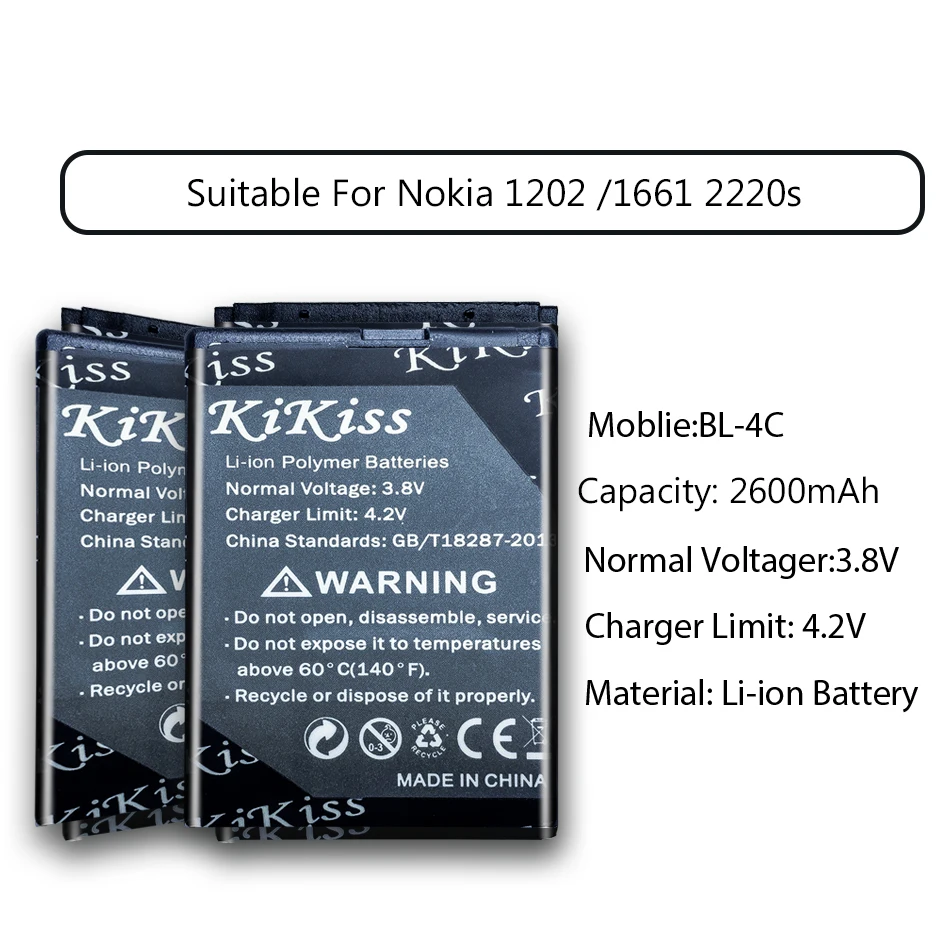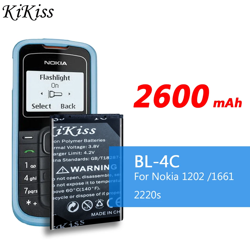 KiKiss BL-4C мобильный телефон Перезаряжаемые Батарея 890mAh для Nokia 1202 1265 1325 1506 1508 1661 1706 2220s BL 4C батареи 2600 мАч
