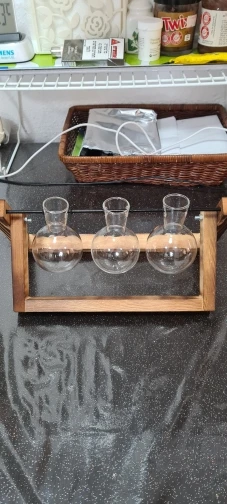 Было легко построить и прибыл в хорошем состоянии. Тем не менее, после фиксации, я понял, что деревянная подставка слишком короткая, и это означает, что вместо того, чтобы стеклянные бутылки были подвешены, как показано на картинке, они на самом деле прикасайтесь к столешнице. Даже с регулировкой ширины основания деревянного стенда бутылки либо слегка наклоняются на одну сторону, либо сидят на столешнице.
