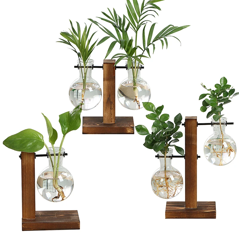 Прозрачная ваза, деревянная рама для растений, водная посадка, цветочный горшок, Цветочная композиция, контейнер, настольное украшение, столешница, украшение