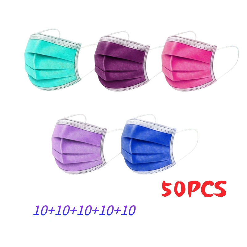 Одноразовая Нетканая 3-слойная маска с фильтром для взрослых, 10-100 шт., фиолетовая, розовая, зеленая маска для лица, дышащая маска для лица для взрослых
