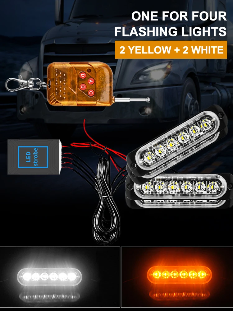 Аварийный проблесковый светильник, 4 Х6 светодиодный, для автомобиля, грузовика, беспроводной пульт дистанционного управления, сигнальная лампа, сигнальная лампа пожарного, сигнаПредупреждение па, Прямая поставка