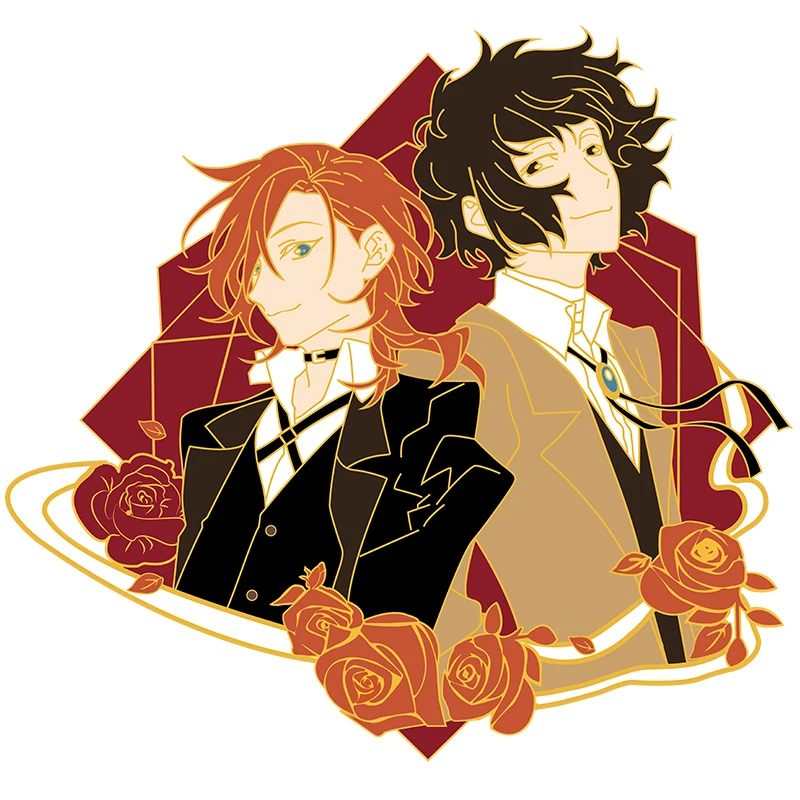 Японская эмалированная булавка в стиле аниме бродячие догсы двойной черный партнер дазай Осаму и накахара чууя брошь Милая мультяшная Роза в подарок