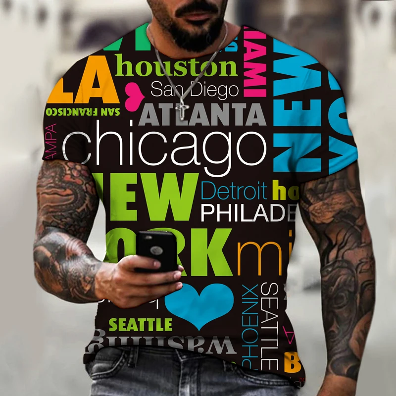 Мужская футболка 2021 с круглым вырезом и 3D-принтом