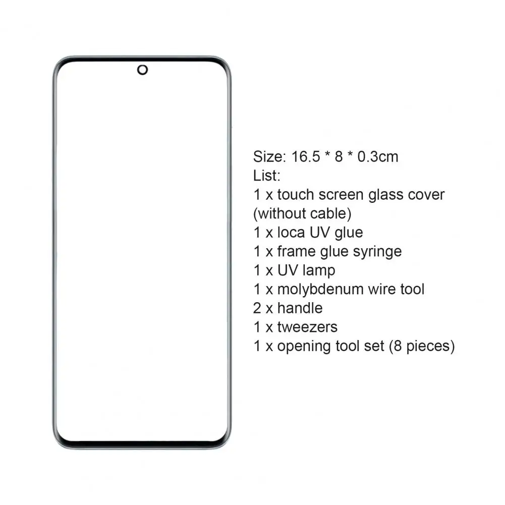 Ультра-тонкий телефон сенсорный экран Замена Передняя внешняя линза стекло экран ремонт комплект для Samsung Galaxy S8/S8 Plus/S9/S9 Plus/S10/S20/S21 Plus Описание:Использование УФ-клеевого капельницы позволяет вам удобно распределить точное количество LOCA-UV клея.Он поставляется с полным набором инструментов, поэтому вы можете безопасно открыть телефон, не повреждая крышку телефона. Он имеет функцию замены сломанного, поврежденного и неиспользованного экрана телефона.Он изготовлен из высококачественного закаленного стекла с олеофобным покрытием, которое может идеально заменить оригинальное стекло для сенсорного экрана.Длина изделия составляет 16,5 см, ширина-8 см, а толщина-0,3 см.Продукт совместим с Samsung Galaxy S8/S8 Plus/S9/S9 Plus/S10e/S10/S10 Plus/S20/S20 Plus/S20 Ultra/S21/S21 Plus/S21 Ultra. Название товара: сенсорный экран телефонаМатериал: закаленное стеклоРежим питания УФ-лампы: 3 батарейки AAA (не входят в комплект)Совместимые модели: для Samsung Galaxy S8/S8 Plus/S9/S9 Plus/S10e/S10/S10 Plus/S20/S20 Plus/S20 Ultra/S21/S21 Plus/S21 UltraХарактеристики: точные, профессиональные инструменты, Аксессуары для мобильных телефоновИнформация о размере:16,5 см x 8 см x 0,3 см/6,5 "x 3,15" x 0,12 "(прибл.) Примечания:Благодаря светильник и экрана Цвет Товара может быть s светильник ly отличается из-за характеристик монитора компьютера.Возможны незначительные отклонения в размерах из-за различных измерений вручную.Ультрафиолетовая лампа должна быть снабжена 3 батареями AAA, которые не включены в набор инструментов.Продукт не включает руководство пользователя, ЖК-экран и рамку, только сенсорный экран.Эта часть используется только для замены переднего стеклянного экрана, и рекомендуется Профессиональная установка. Посылка включает в себя:1 x сенсорный экран телефона (гибкий кабель не входит в комплект)1 x Loca-UV клей1 x инжектор клея1 УФ-лампа1 х инструмент для молибдена2 ручки1 пинцет1 Набор инструментов для открытия (всего 8 шт.)