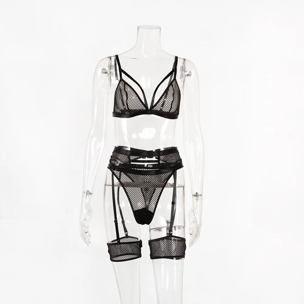 Комплект женского нижнего белья, сетчатые кружевные прозрачные бюстгальтеры, сексуальное женское нижнее белье и подвязки, комплект из 3 предметов, эротическое сексуальное белье, нижнее белье