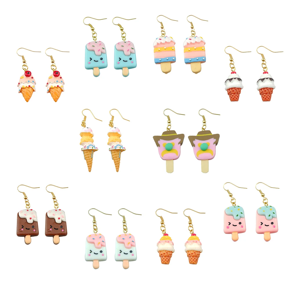 Серьги в виде мороженого для женщин, милые серьги-капли из смолы, детские ювелирные изделия ручной работы, подарки сделай сам