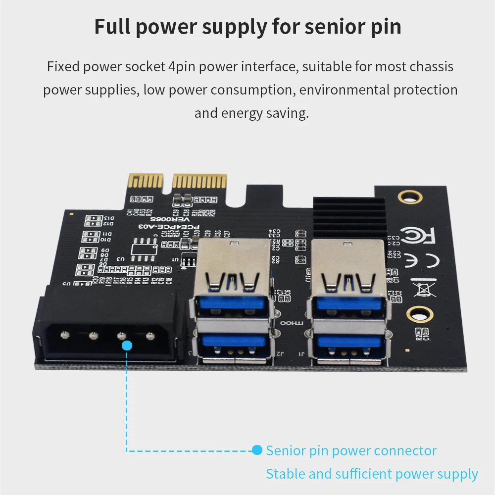 TISHRIC PCIE от 1 до 4 PCI Express, усилитель USB 3,0 Hub PCIE, кар...