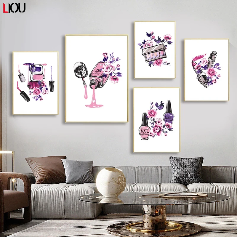 Современный розовый цветок лак для ногтей модный постер с принтом ресницы макияж Холст Искусство Живопись стены картины для девушки Спальня Декор