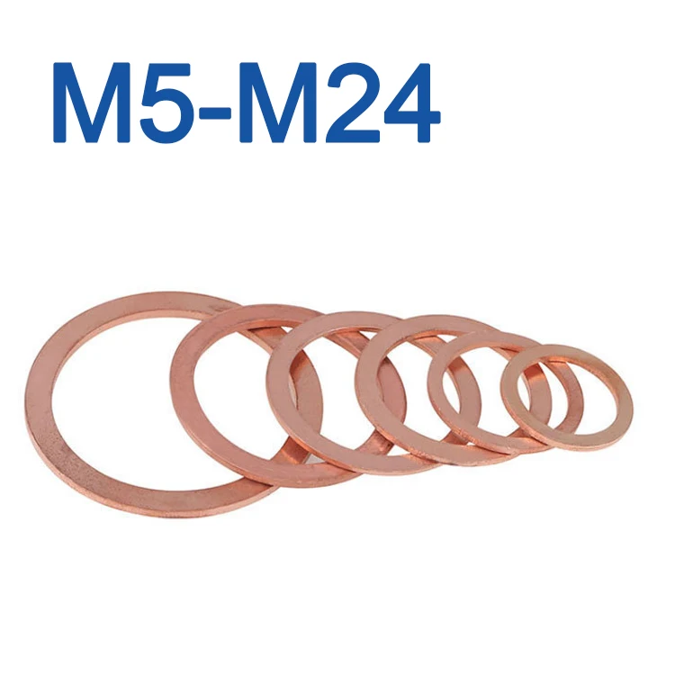 Шайбы шайбы из твердой меди 10 50 шт., плоские Прокладочные кольца, уплотнительные прокладки, шайбы крепежные, M5 M6 M8 M10 M14 M16 M18 M20 M22 M24