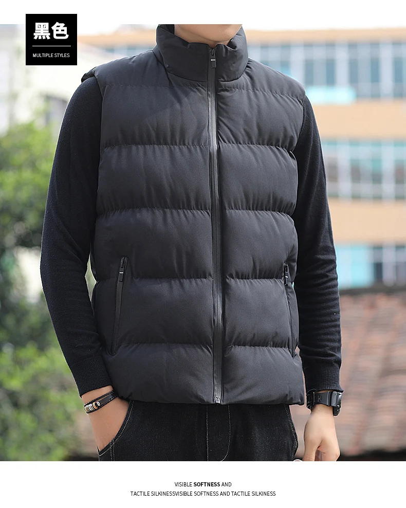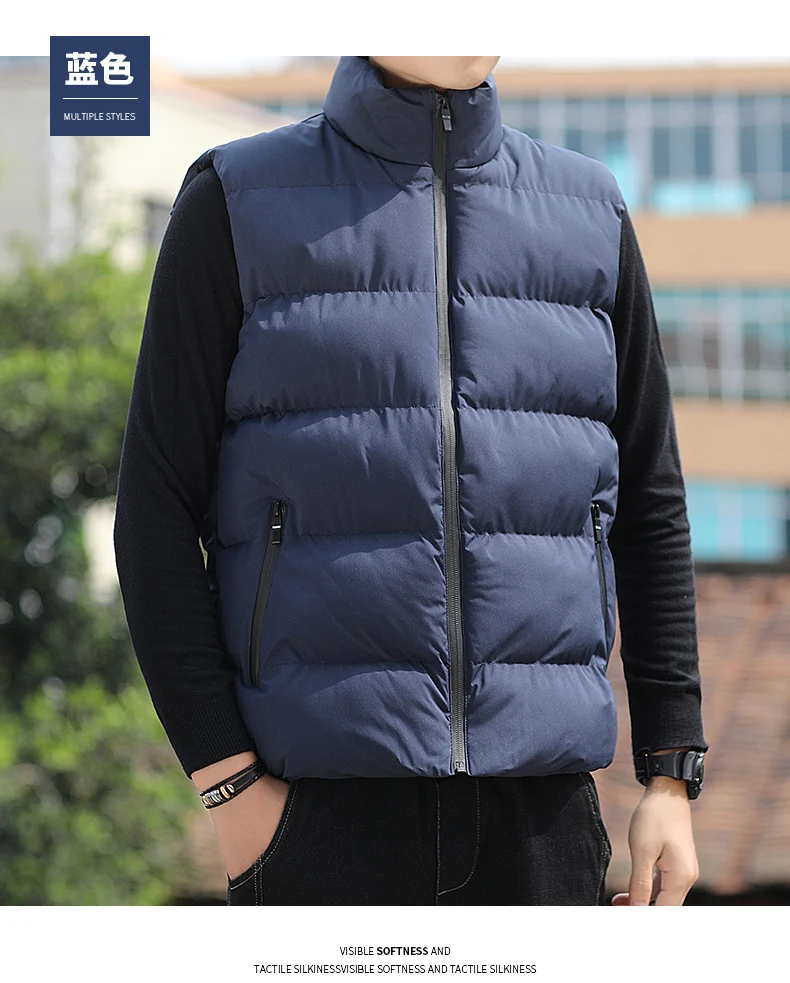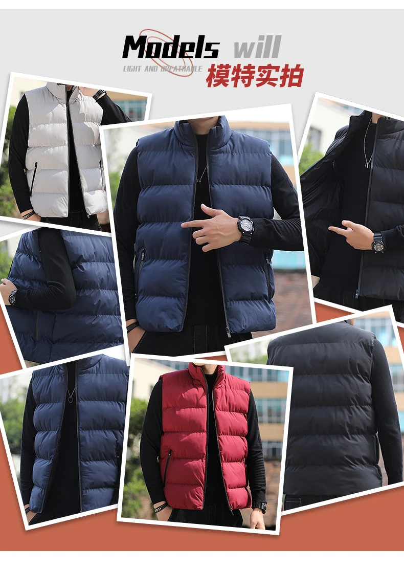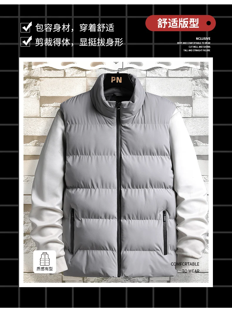 Новинка, Мужской осенне-зимний пуховик с хлопковой подкладкой, жилет, корейская мода, воротник-стойка, Теплое повседневное пальто без рукавов для мужчин