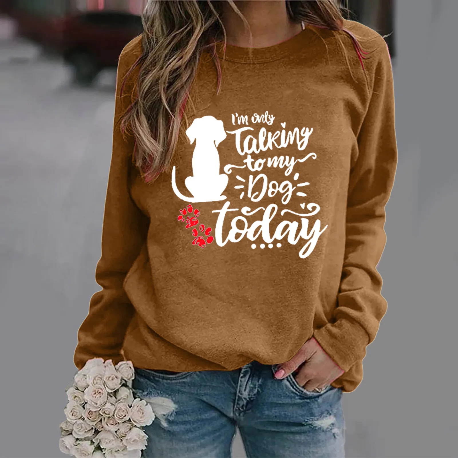 Женская Повседневная рубашка с длинным рукавом с принтом собачьей лапы и круглым вырезом, блузка, пуловер