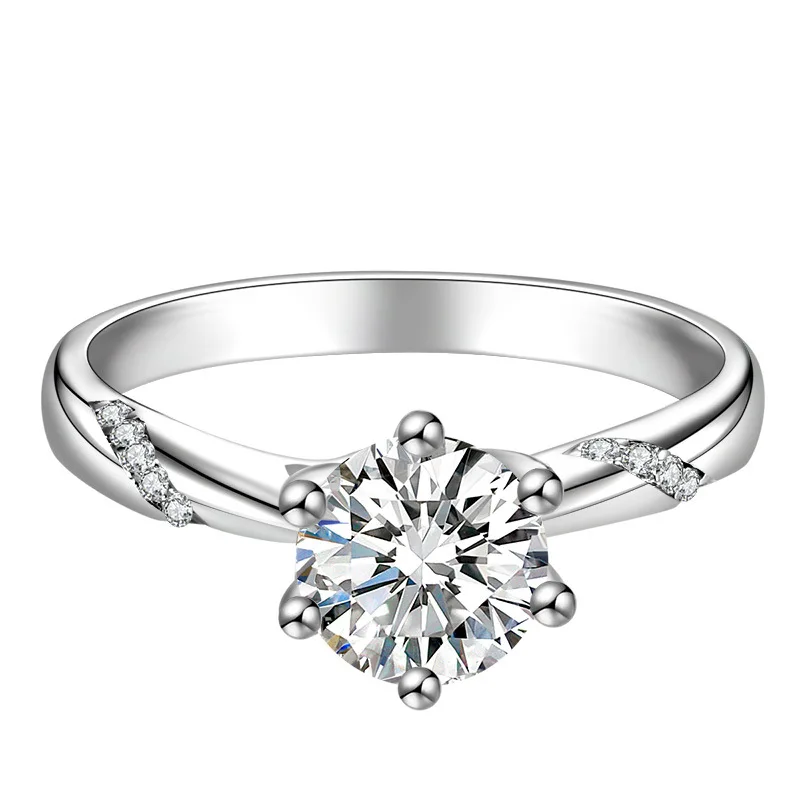 Классическое кольцо из серебра пробы с муассанитом 1CT VVS1 D