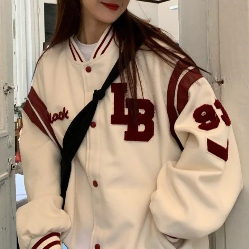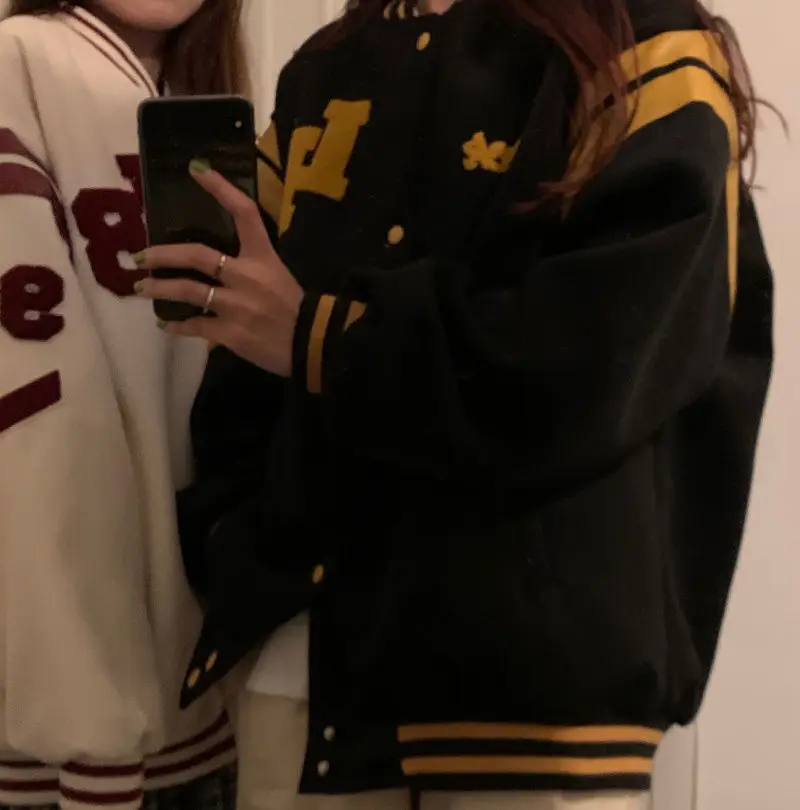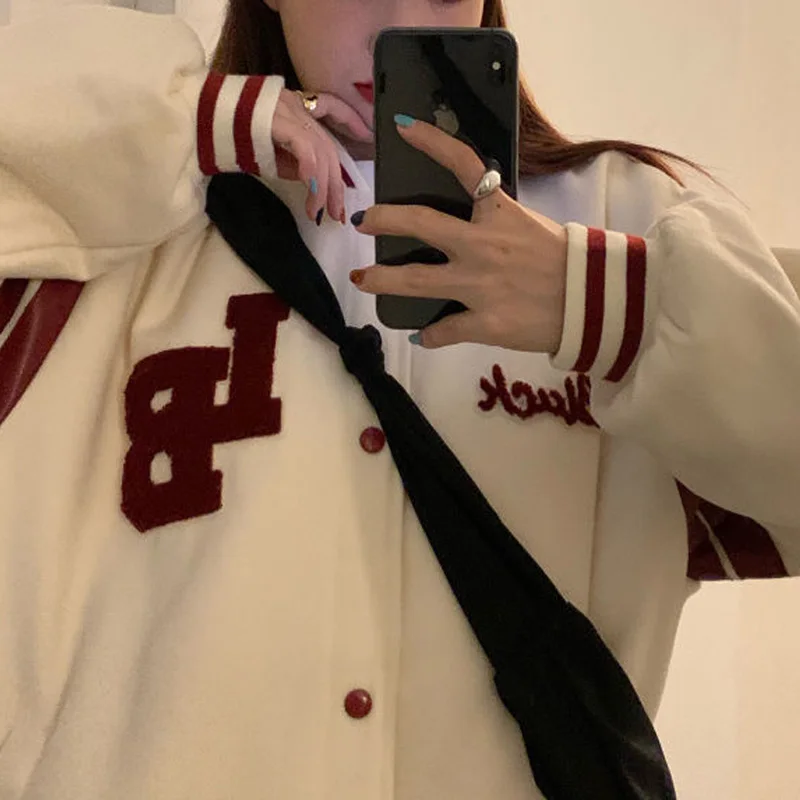 Осень 2021 Er, модные корейские флисовые толстые свитшоты, женская уличная одежда, повседневная бейсбольная форменная куртка в стиле хип-хоп
