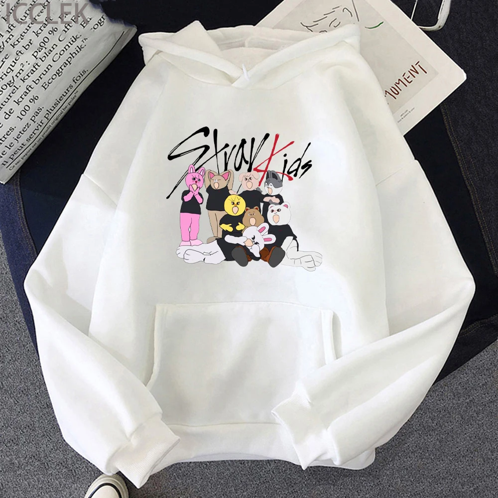 Корейская детская толстовка с капюшоном Kpop Stray Kids SKZOO University Print Cute мультяшная Женская кавайная Толстовка Harajuku зимняя одежда