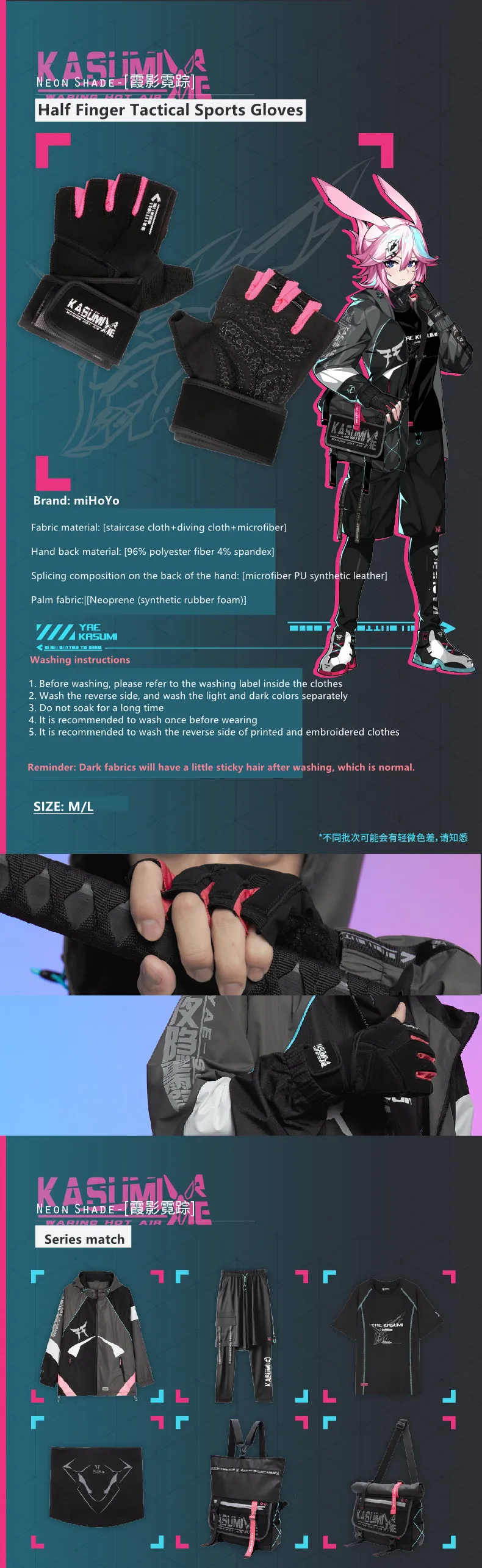 Тактические Спортивные перчатки с полупальцами из аниме игры Honkai Impact 3, для косплея, Yae, Sakura, с неоновыми тенями, тематическая серия