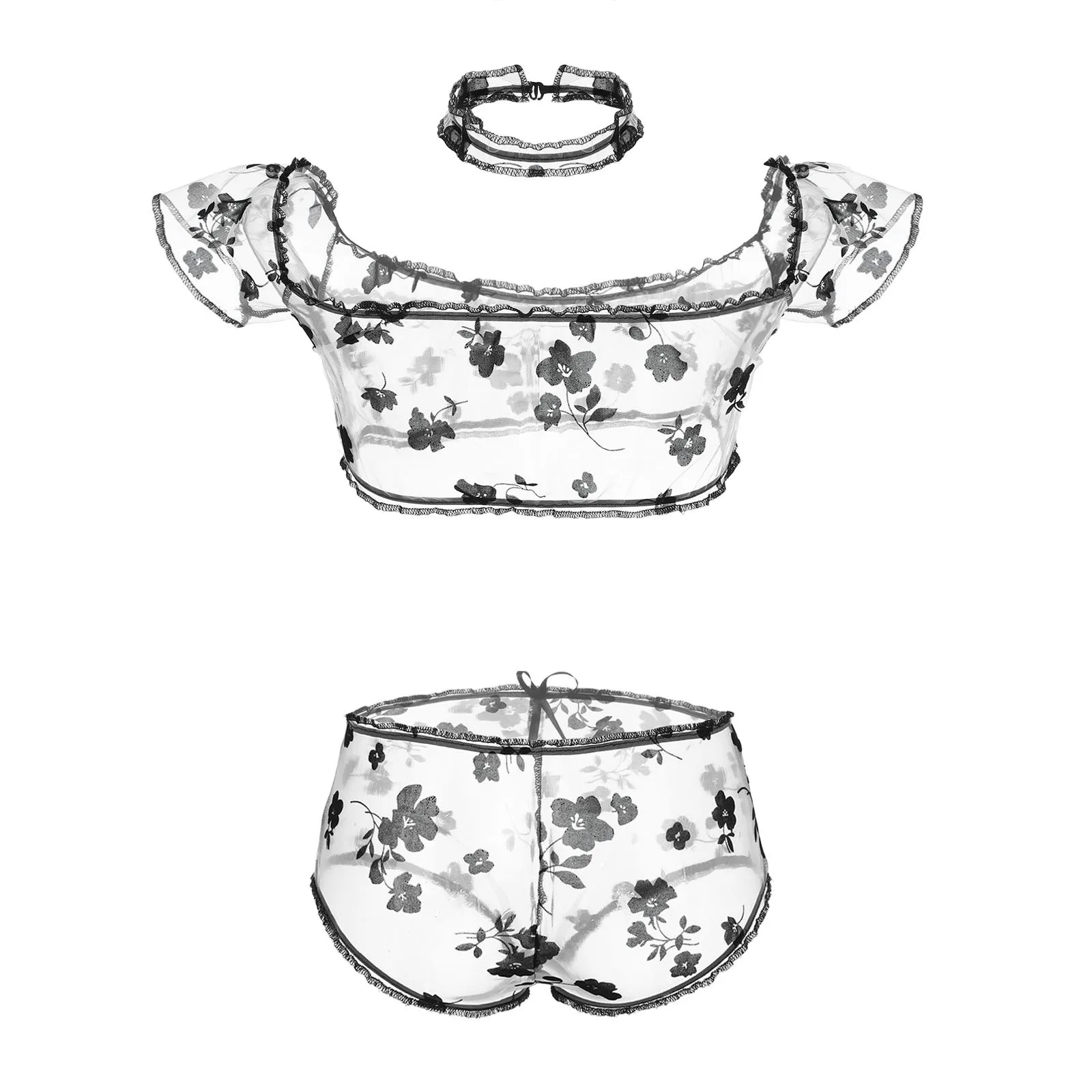 Сексуальное нижнее белье с цветочной вышивкой, стринги, нижнее белье, новая одежда для сна, кольцо на шею