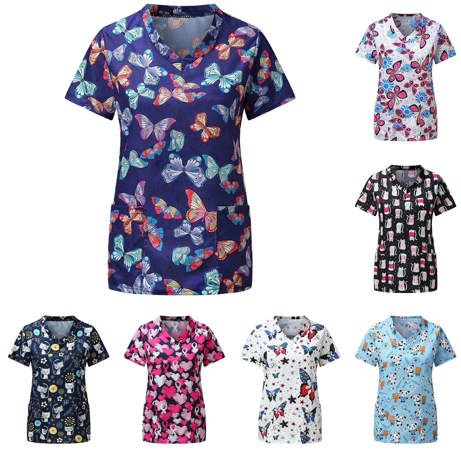 Униформа медсестры женская летняя с коротким рукавом и V-образным вырезом, с принтом сердца, аксессуары для медсестер