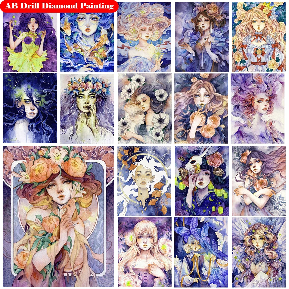 Алмазная живопись 5D с изображением ангела Девушки AB, животные, во...
