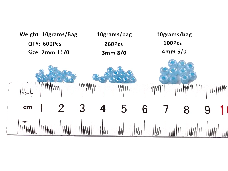 Упаковка: белая сумка на молнии и пузырчатая сумка, мы заботимся о посылкаПосылка: Вы получите 10 г за лот по прайс-листу2,0 мм 10 г прибл. 720 шт3,0 мм приблизительно 10g 360 шт4,0 мм приблизительно 10g 144 шт