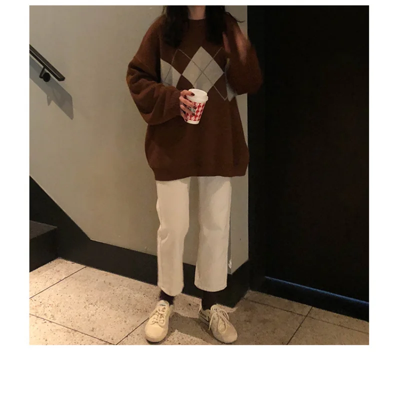 Женский вязаный свитер Argyle, осенне-зимний пуловер оверсайз с кру...