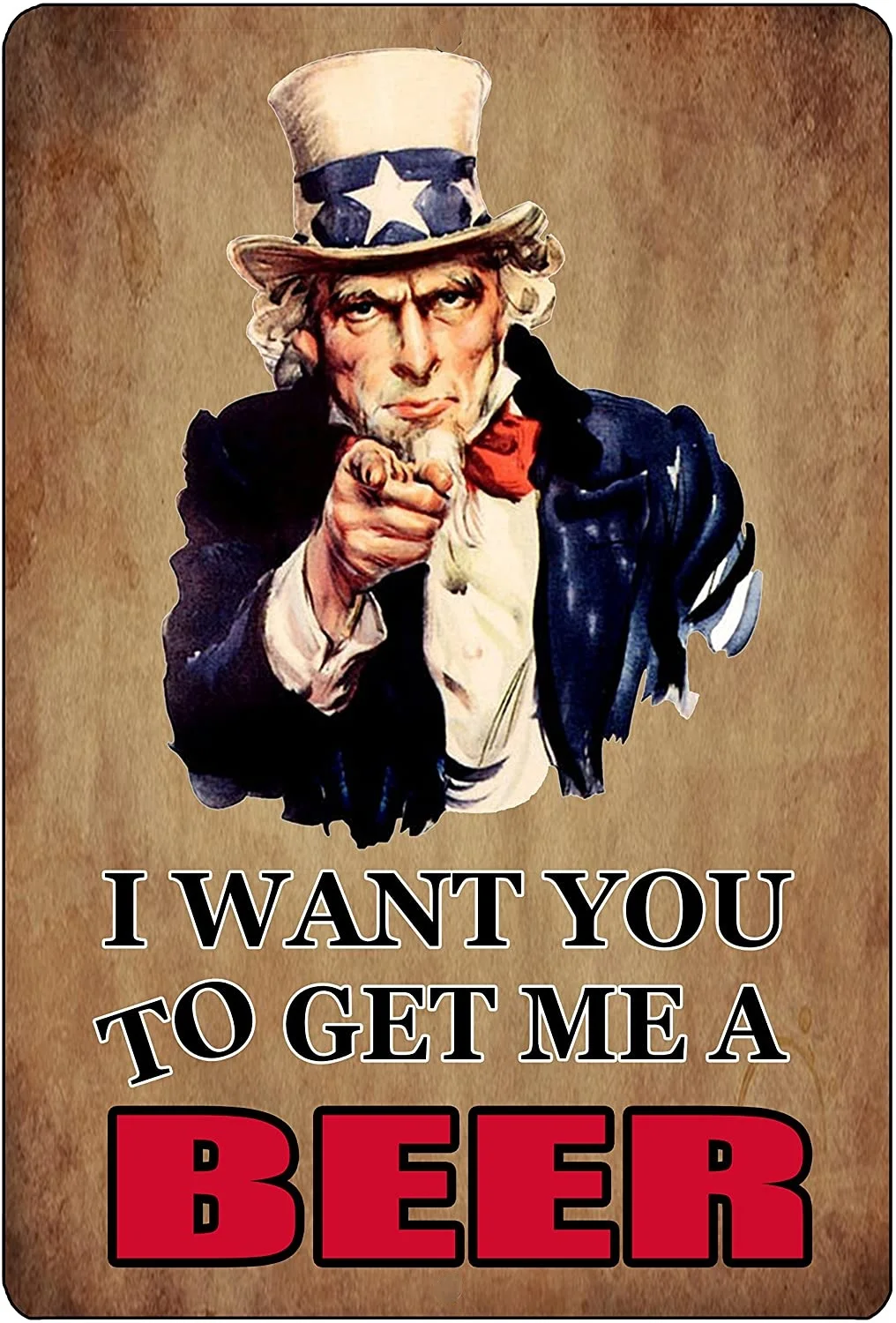 Забавное пиво, спиртовая вывеска, металлическая жестяная вывеска, домашний бар, кухонный знак, Дядюшка Сэм, я хочу, чтобы вы дали мне пиво, настенное художественное украшение, мужская пещера