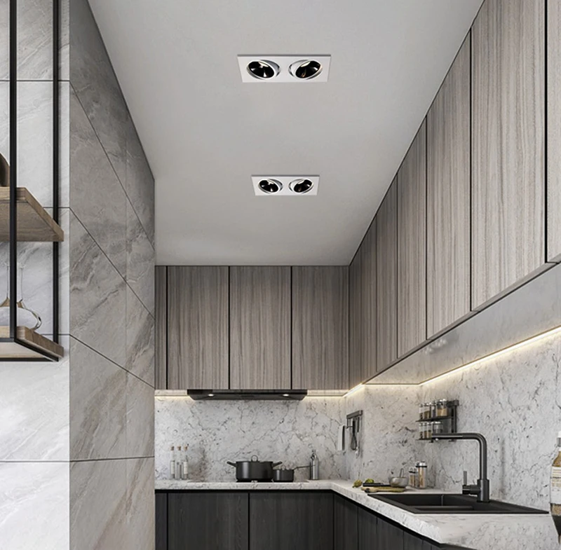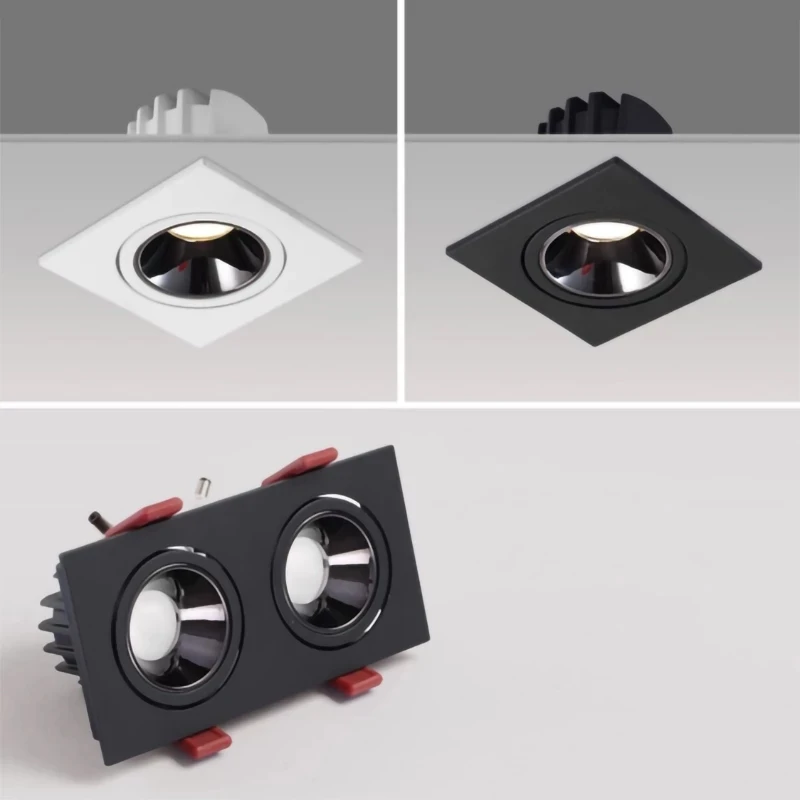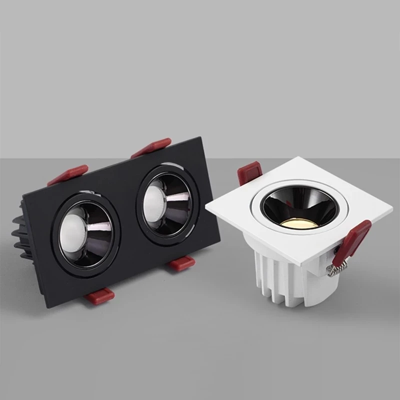Угловой Регулируемый антибликовый квадратный светодиодный встраиваемый Точечный светильник с COB матрицей, 7 Вт, 9 Вт, 12 Вт, 15 Вт, светодиодный потолочный Точечный светильник для кухни, гостиной, помещений