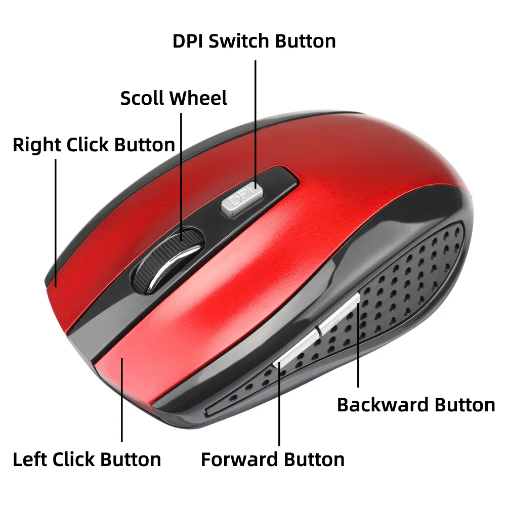 Беспроводная мышь 2,4 ГГц, Регулируемая DPI Мышь, 6 кнопок, оптическая игровая мышь, геймерская беспроводная мышь с USB-приемником для компьютера, ПК