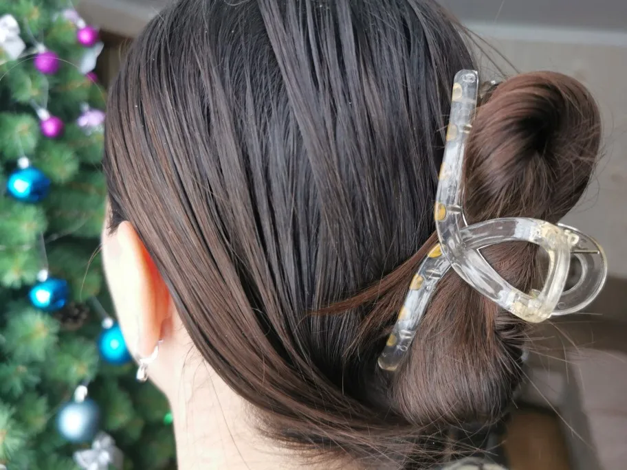 Зажим-красивый серый сланец. Подходит для всех типов волос. Товар был отправлен в пузырчатой бумаге, поэтому он не сломался. Быстрая доставка