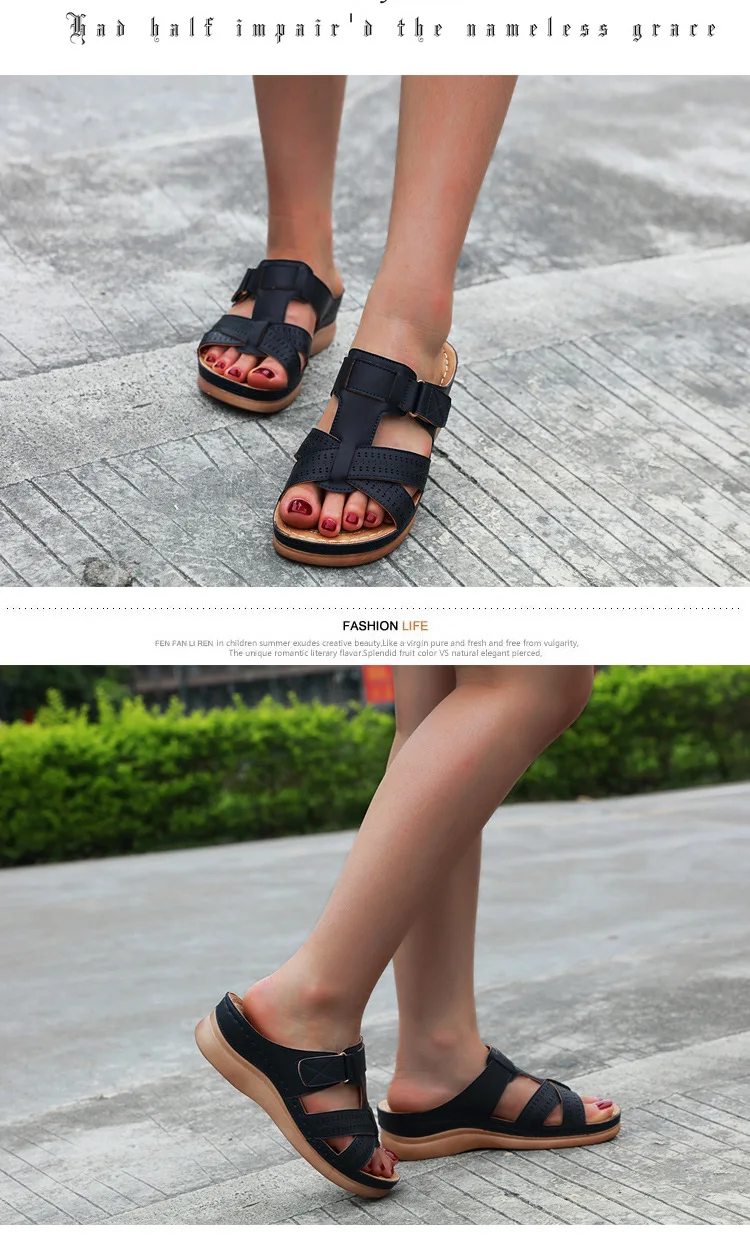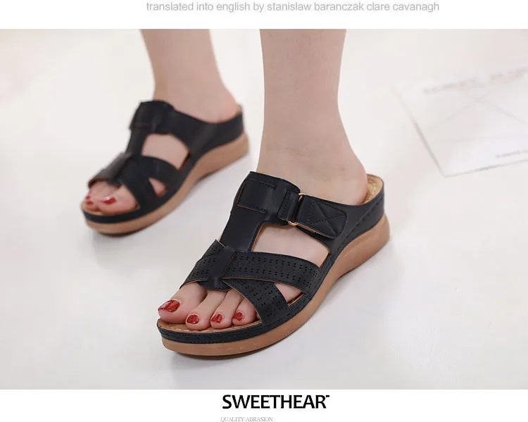 Женские босоножки на танкетке, ортопедические сандалии с открытым носком, винтажные кожаные Нескользящие, повседневная обувь в стиле ретро на платформе