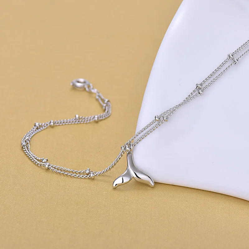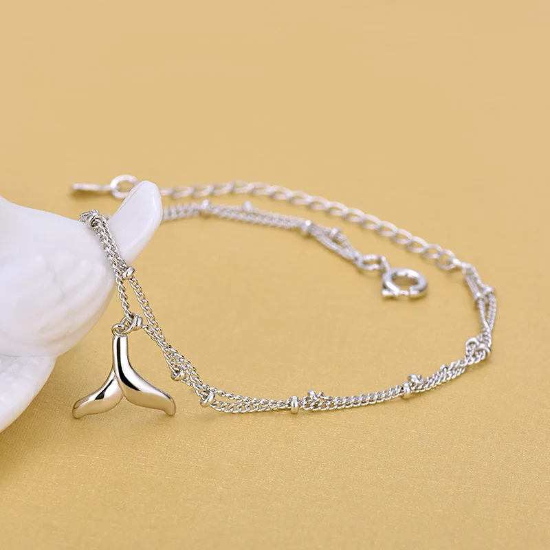 Браслет женский из серебра 925 пробы, двухслойный, с круглой бусиной