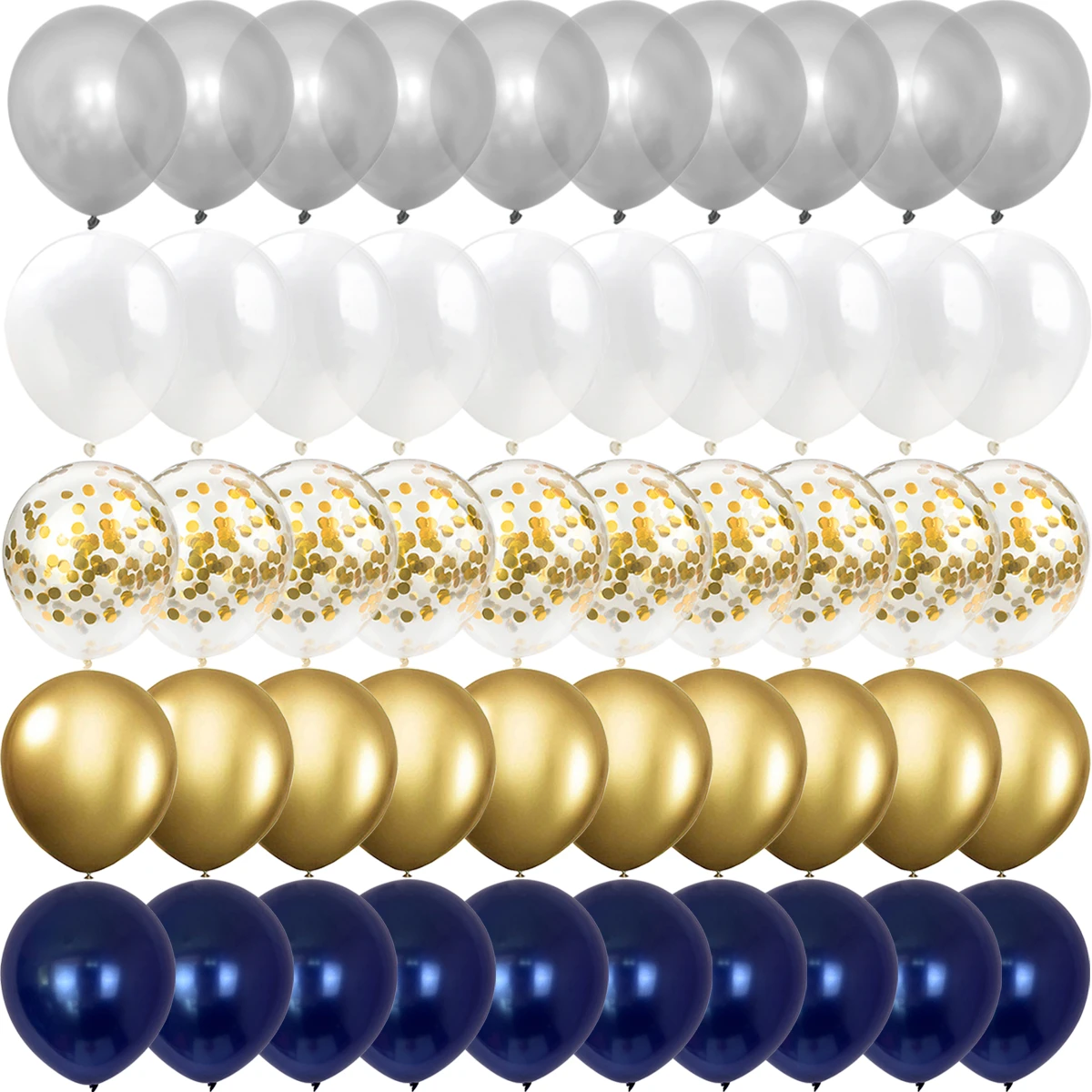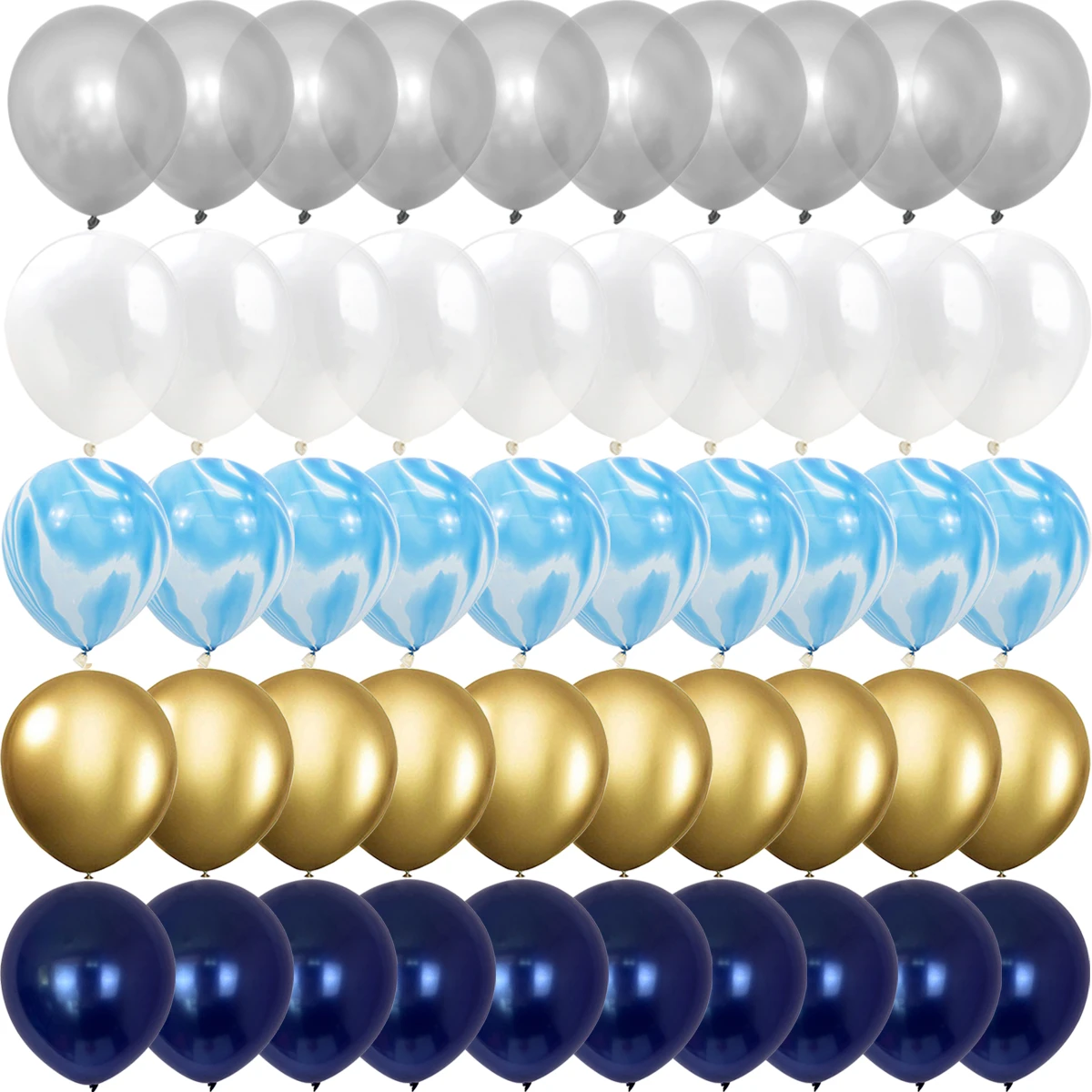 Отличные наборы латексных воздушных шариков по доступной цене! В набор входит 50 шариков разных цветов! Я выбрала: синий, белый, серебряный, золотой и прозрачный с золотым конфети. Количества шариков в наборе хватит для организации и украшения какого-то мероприятия: Дня рождения, вечеринки или просто для сюрприза близким людям! Шарики хорошего качества - достаточно плотные и большого размера! Спасибо большое продавцу!