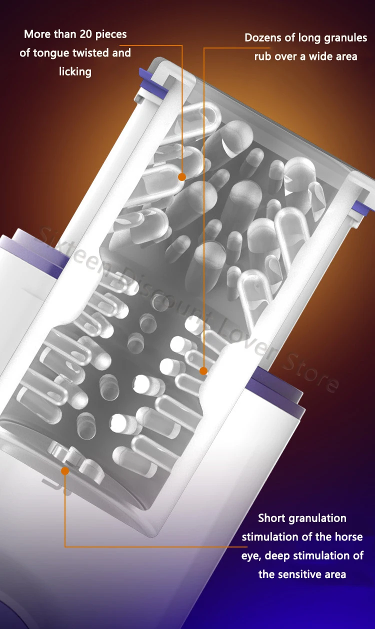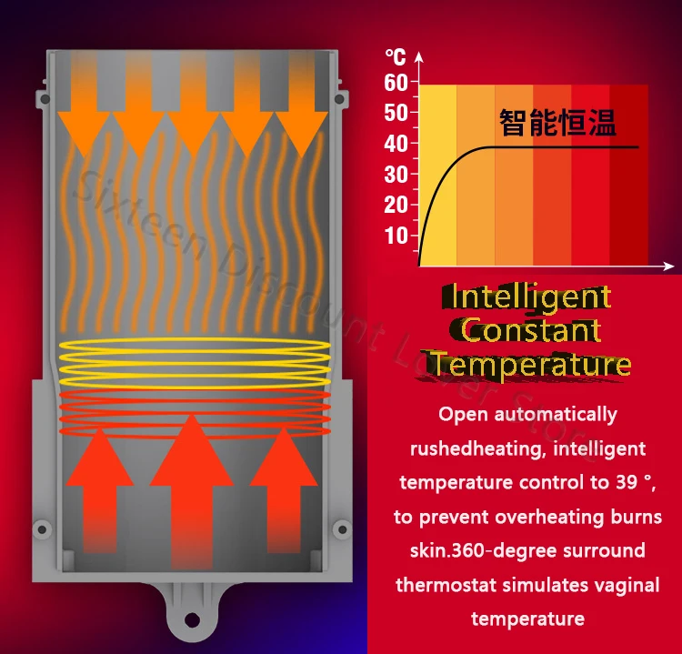 1. Интеллектуальная постоянная температура. 39 ° интеллектуальный контроль температуры, для предотвращения перегрева ожогов кожи. 360 градусов окружающий термостат имитирует температуру влагалища
