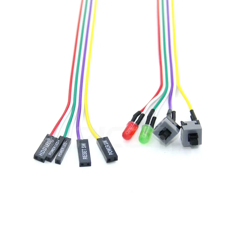 ПК ATX Блок питания сброс 2 кабель переключателя с 2 светодиодный ными лампами