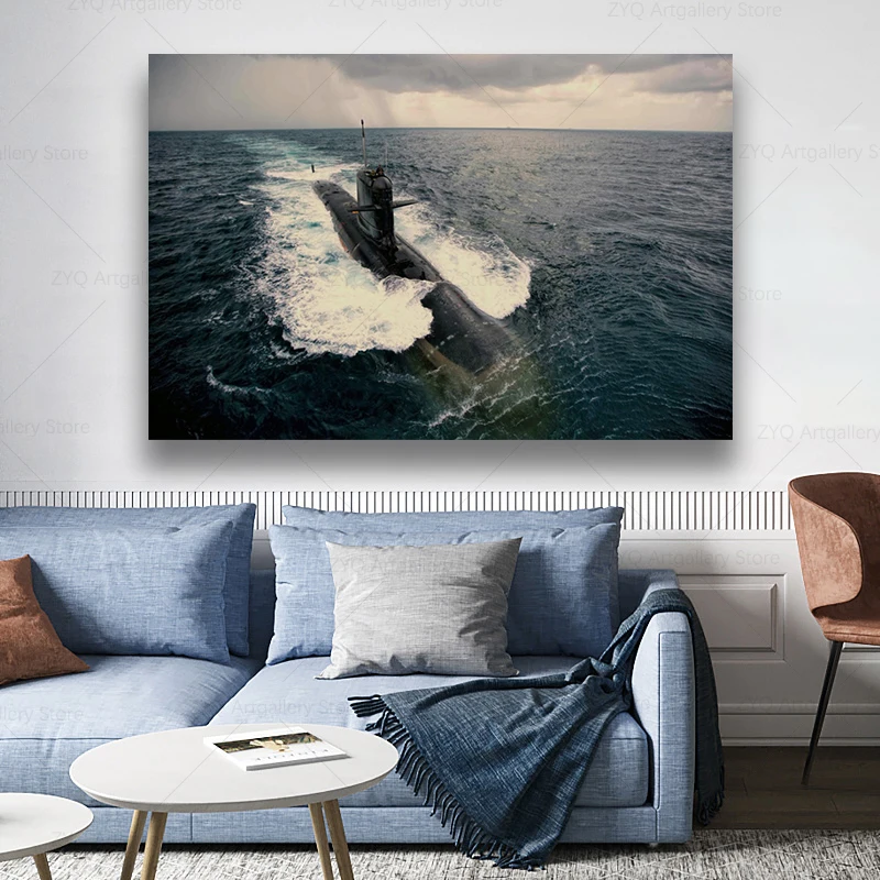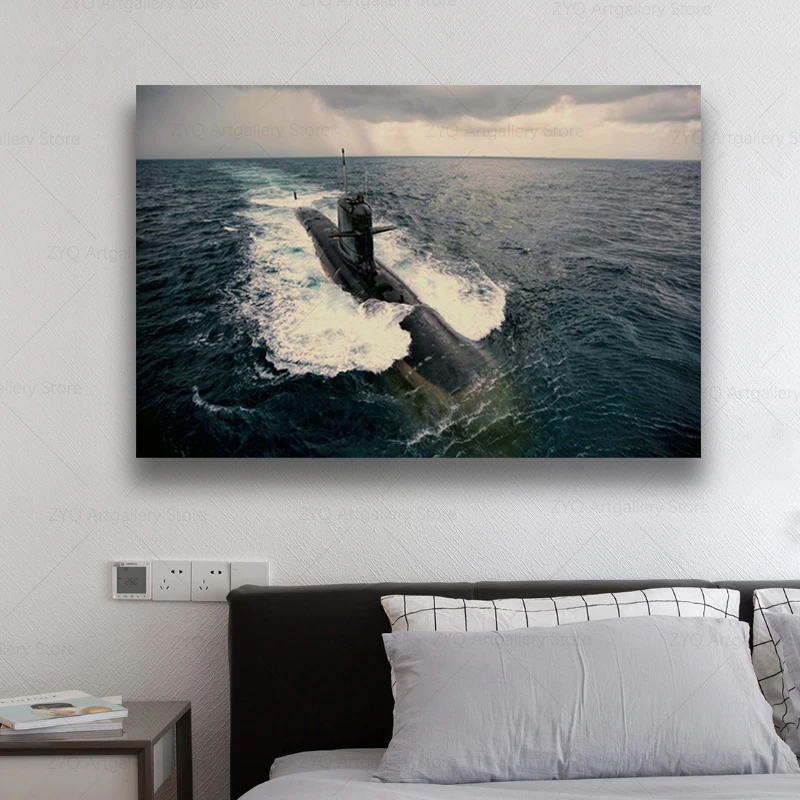 Электроподводная лодка Kalvari class s21, морской корабль, морская пейзаж, ткань, фотография, домашнее искусство, украшение для гостиной