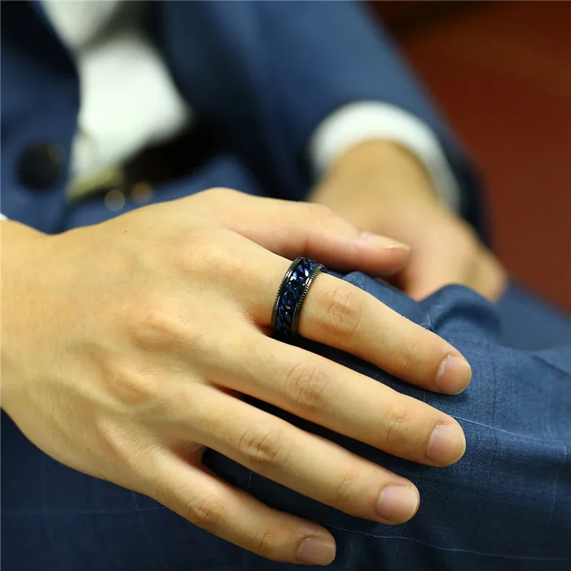 LETAPI Новая мода Панк Винтаж нержавеющая сталь вращающаяся цепочка пара кольцо классический золотой серебряный цвет цепочка ювелирные изделия кольцо для мужчин