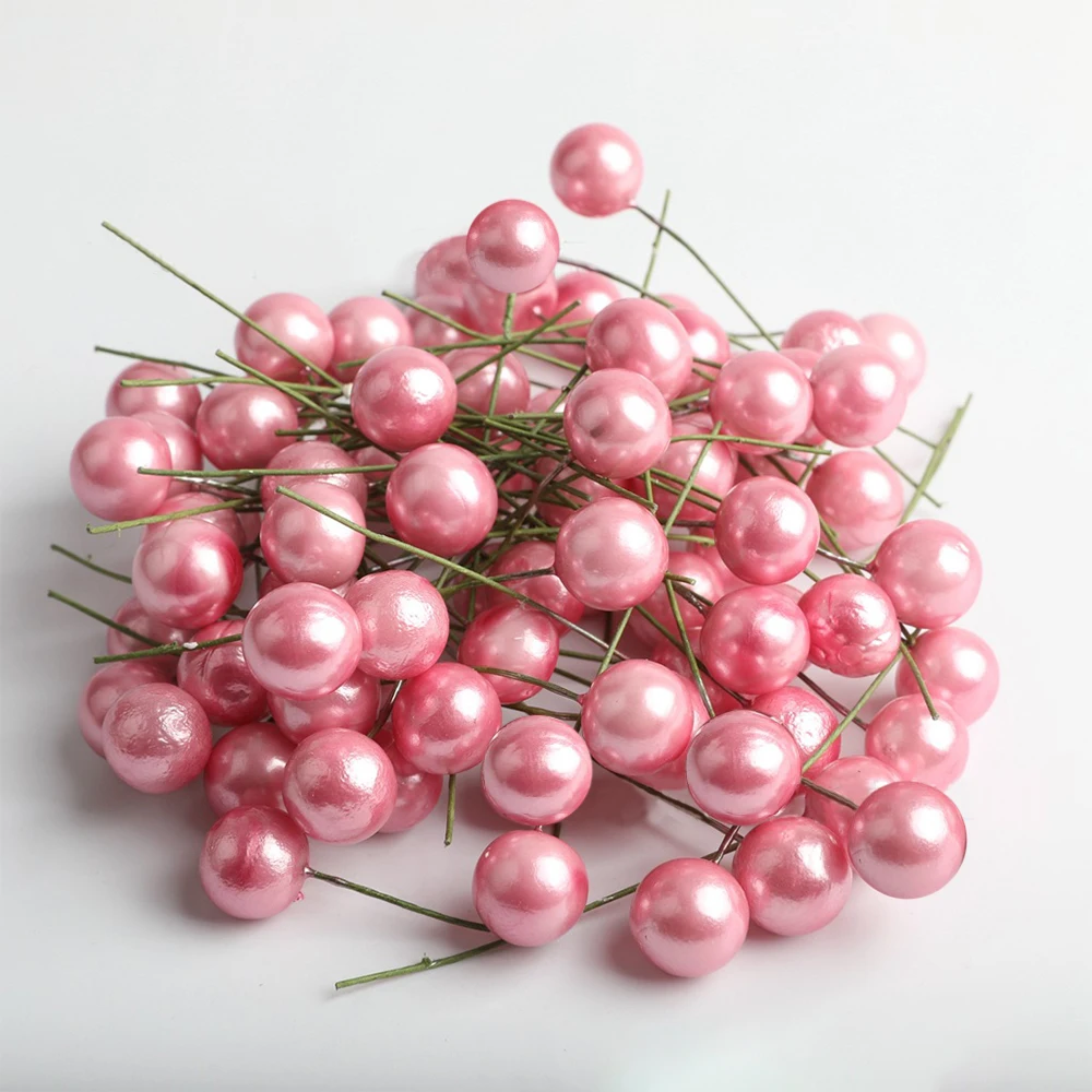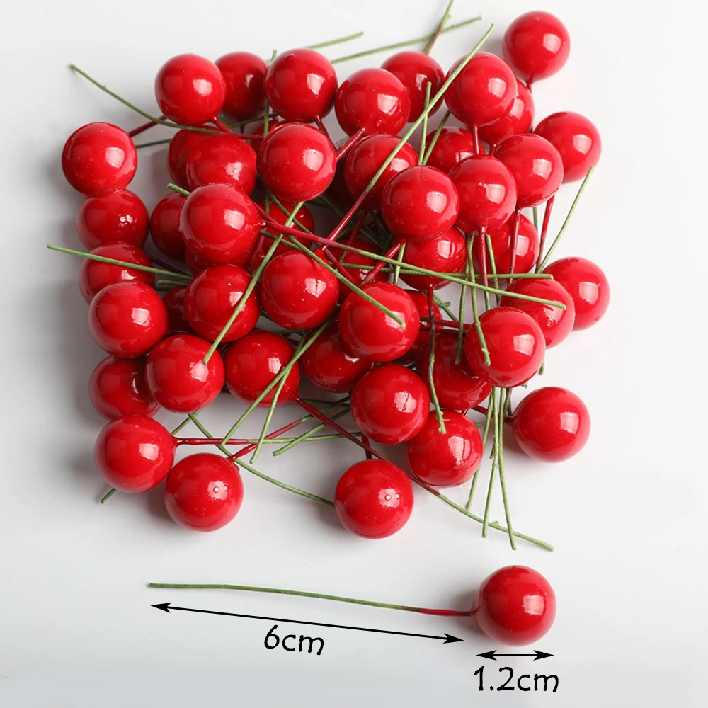 Украшения для рождественской елки, 100 шт., с жемчугом, разноцветные ягоды, искусственные тычинки для цветов, Вишенки, сделай сам, для свадебного торта, подарочной коробки, венков