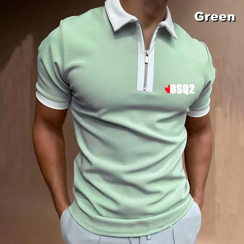 Рубашка-поло мужская, летняя, с коротким рукавом, на молнии, дышащая