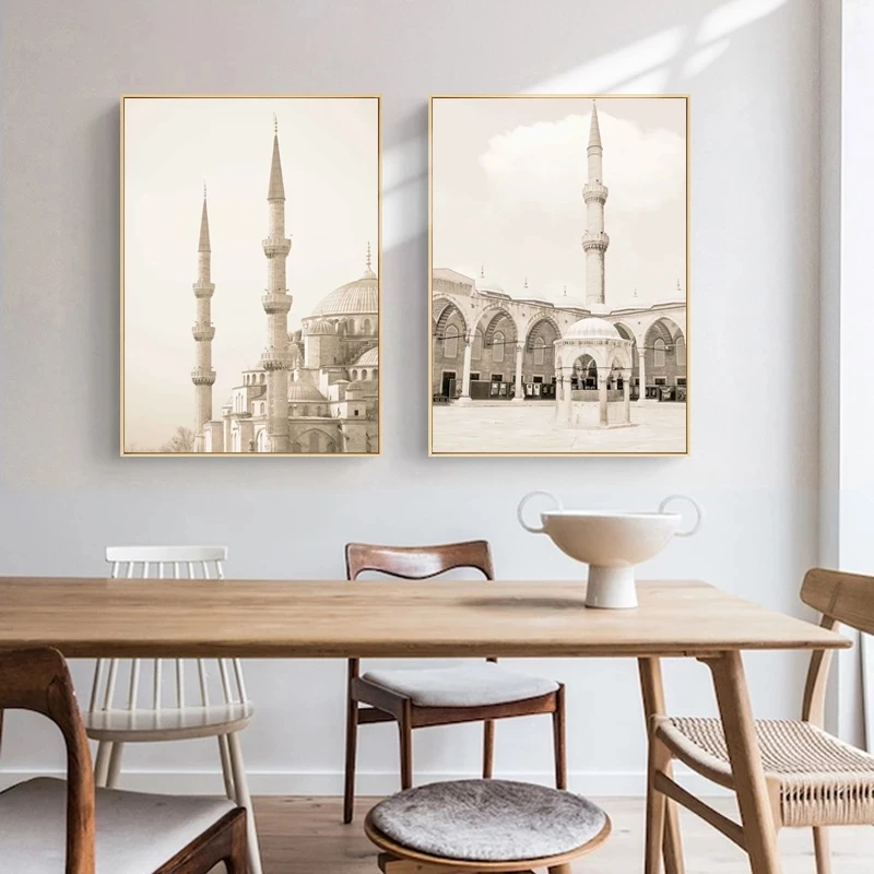 Исламский бежевый плакат, пейзаж, холст, принт, дворец, город, ност...