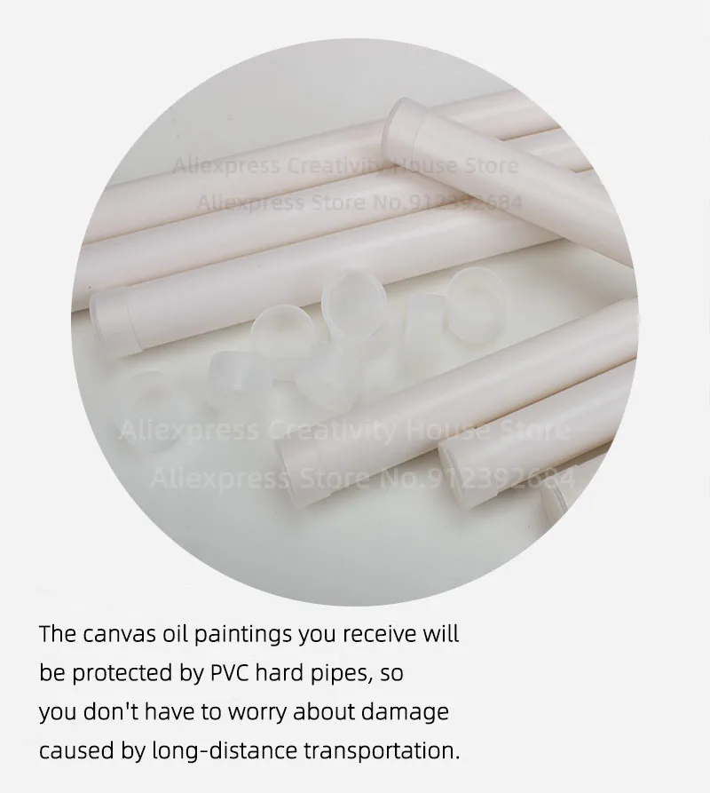 Полученные Вами картины маслом на холсте будут защищены трубками из пвчарда, поэтому вам не придется беспокоиться о повреждениях, вызванных транспортировкой на большие расстояния.